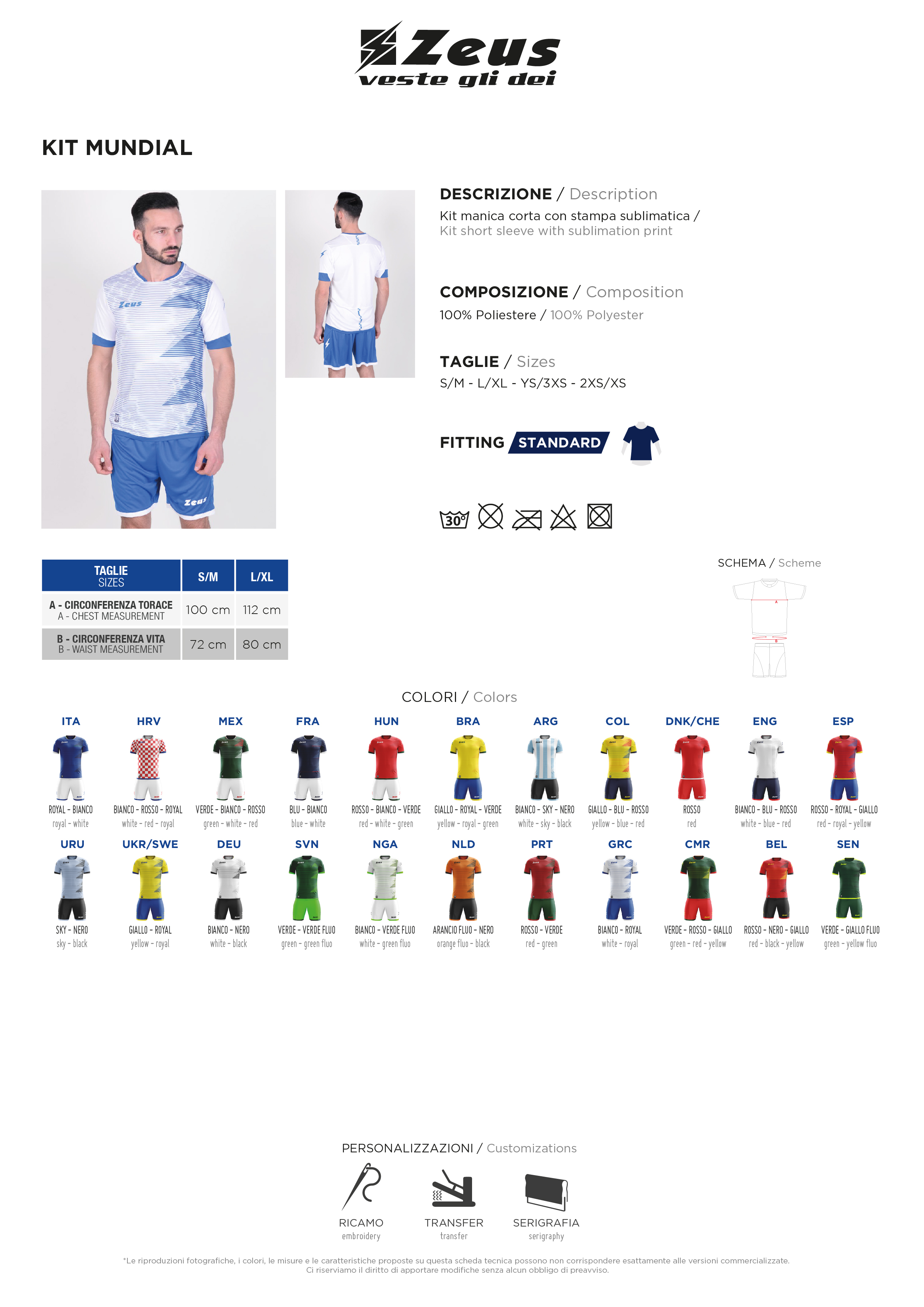 Fotbalový komplet dres+trenky Zeus Mundialdo 14 dnů890 Kč/ ks736 Kč bez DPH