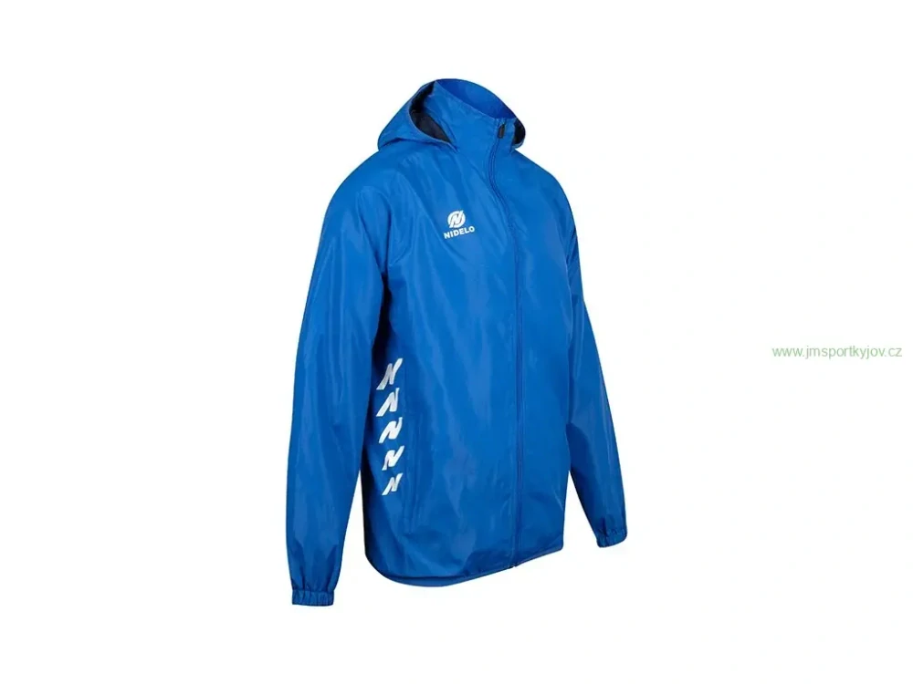 Modrá sportovní bunda Nidelo s kapucí je ideální volbou pro tréninky i volný čas. Je vyrobena z lehkého, odolného materiálu, který chrání proti větru a lehkému dešti. Praktický celopropínací zip usnadňuje oblékání, elastické manžety zajišťují pohodlné nošení a postranní kapsy poskytují dostatek prostoru pro drobnosti. Moderní vzhled doplňuje bílé logo Nidelo na hrudi a dynamický potisk na boku.
